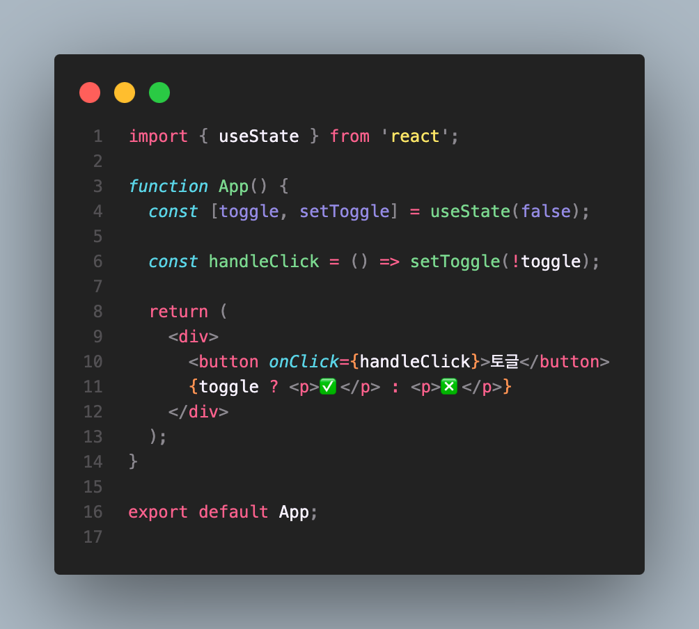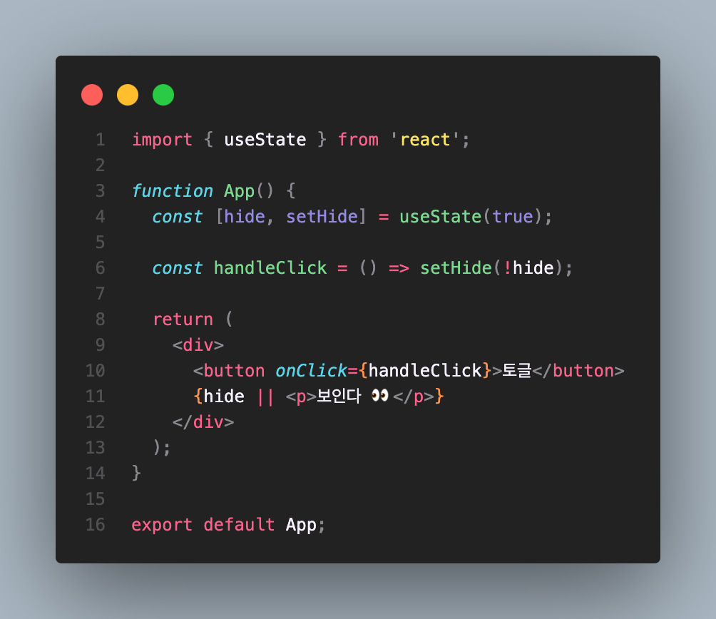이게 우리가 가장 흔하게 사용하는 조건부 렌더링 방식이다! 직관적이고 이해하기 편한 것 같다.