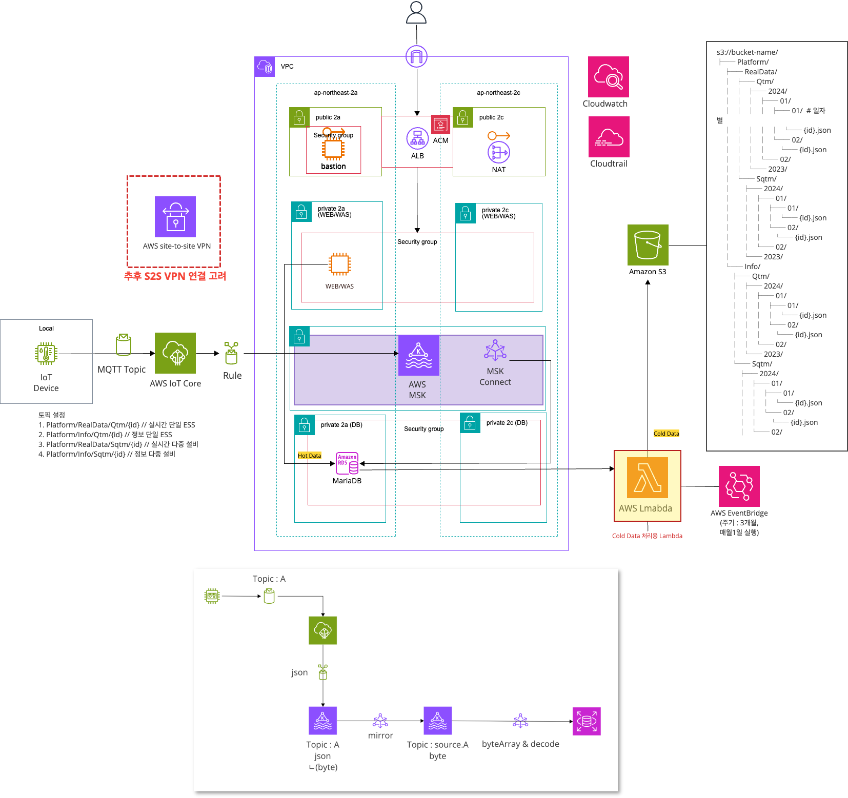 1. AWS IoT Core에서 MSK로 data가 들어올때 key, value 형태로 들어옵니다.