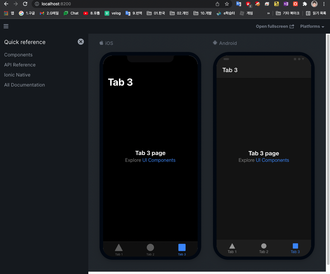 하지만 아래 명령어로 실행할 경우 안드로이드, IOS, 윈도우에서 확인이 가능하게 지원되는 브라우저 창이 뜬다.