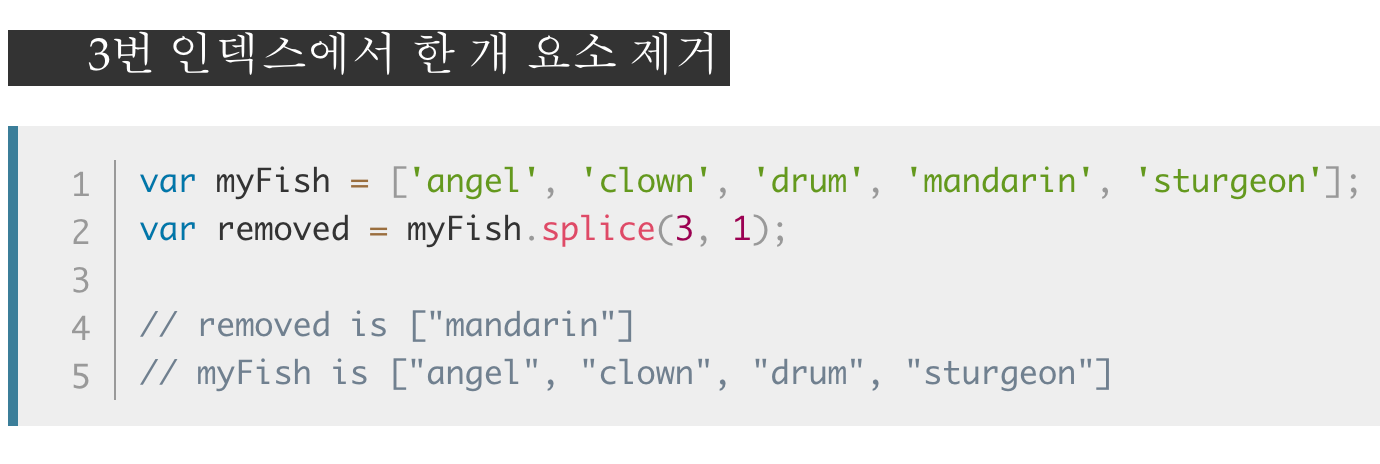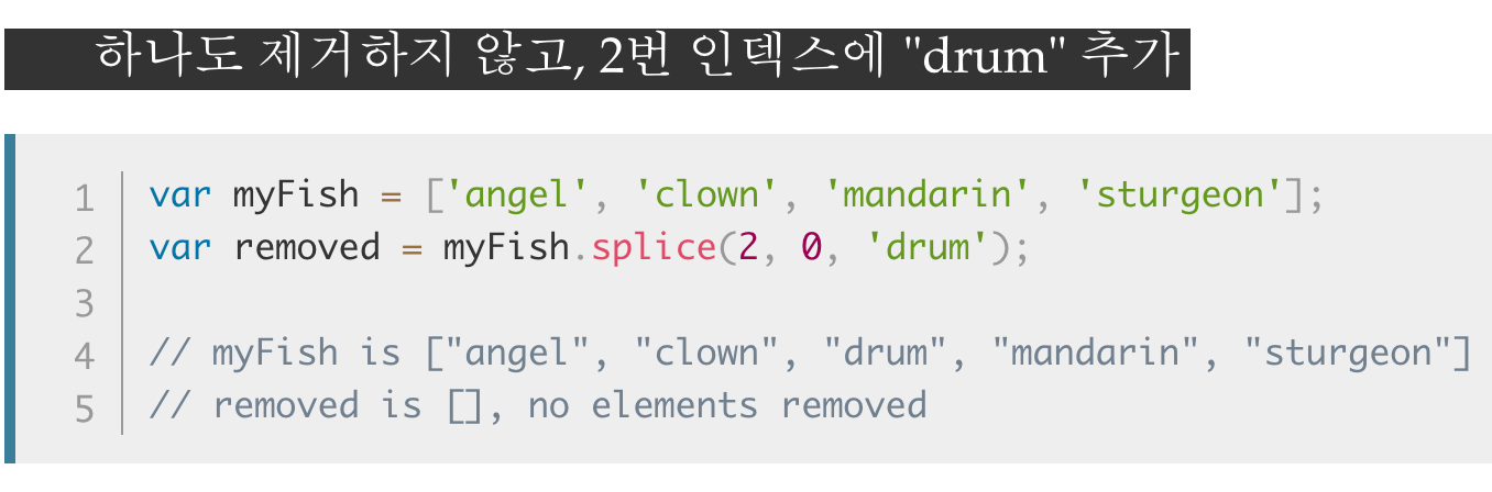 splice() 메서드는 배열의 기존 요소를 삭제 또는 교체하거나 새 요소를 추가하여 배열의 내용을 변경합니다.
