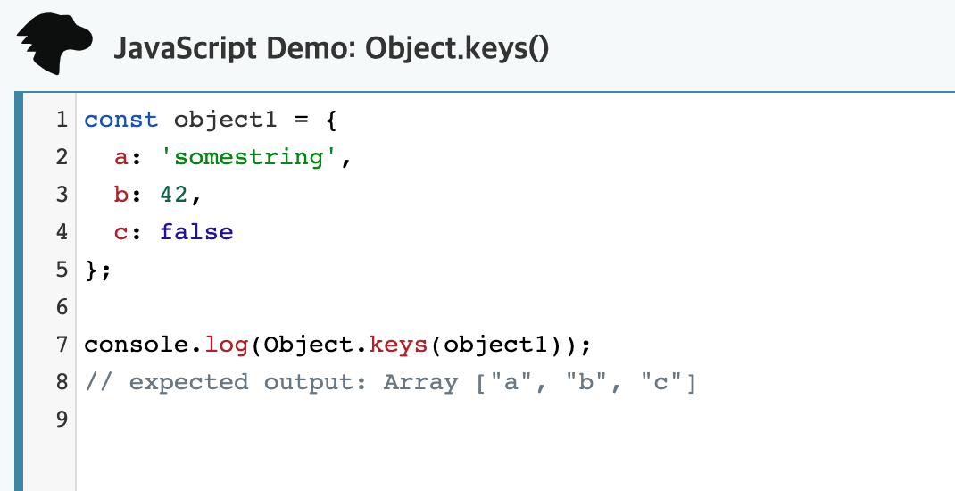 이 Object.keys()메서드는 지정된 객체의 고유하고 열거 가능한 속성 이름 배열을 반환하며 일반 루프와 동일한 순서로 반복됩니다.