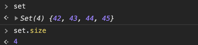 size 접근자 속성은 Set 객체의 원소 수를 반환합니다.