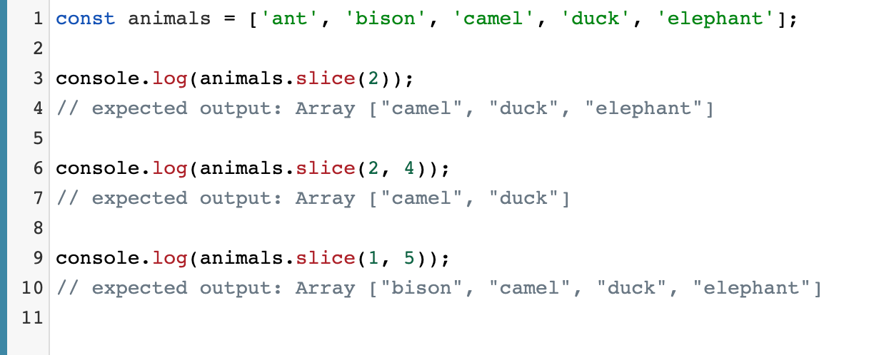slice() 메서드는 어떤 배열의 begin부터 end까지(end 미포함)에 대한 얕은 복사본을 새로운 배열 객체로 반환합니다. 원본 배열은 바뀌지 않습니다.