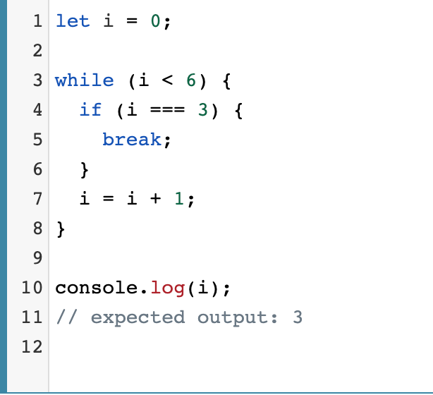 break 문은 현재 반복문, switch 문, 또는 label 문을 종료하고, 그 다음 문으로 프로그램 제어를 넘깁니다.