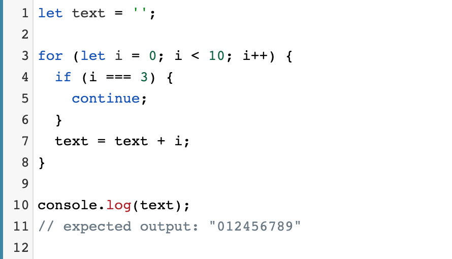 continue 문에는 현재 루프 대신 레이블이 지정된 루프 문의 다음 반복으로 건너 뛰도록하는 선택적 레이블이 포함될 수 있습니다. 이 경우, continue 문은 이 레이블 된 명령문 내에 중첩되어야합니다.