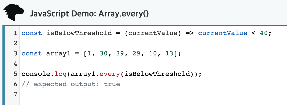 every() 메서드는 배열 안의 모든 요소가 주어진 판별 함수를 통과하는지 테스트합니다.