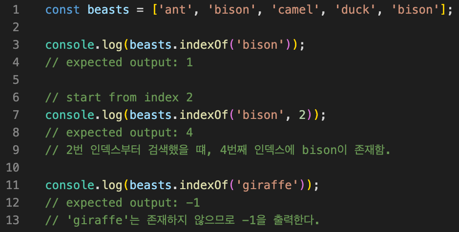 indexOf() 메서드는 배열에서 지정된 요소를 찾을 수 있는