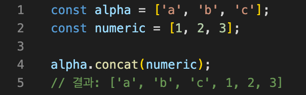 기존 배열에 합쳐서 새 배열을 반환합니다.