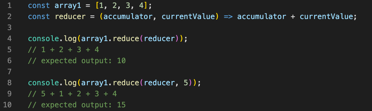 reduce() 메서드는 배열의 각 요소에 대해 주어진