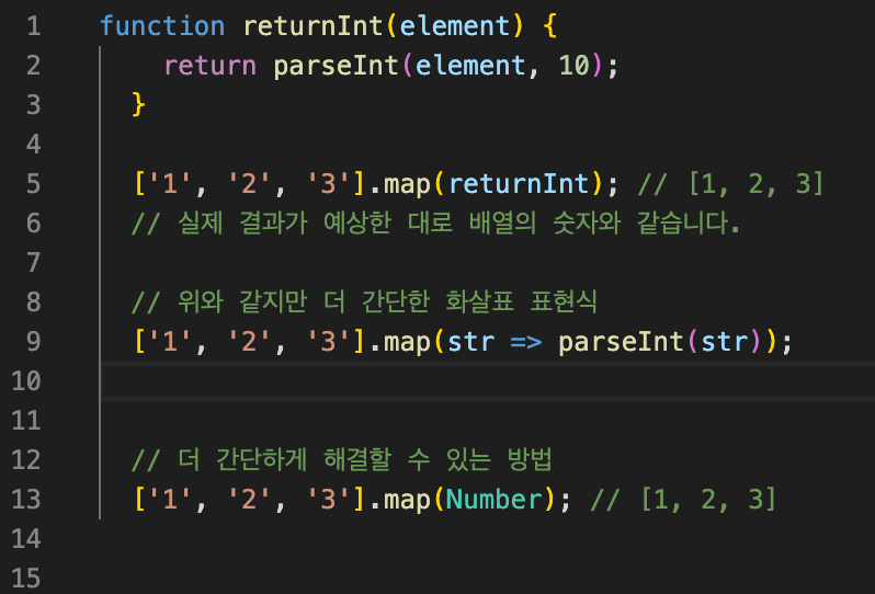 주어진 함수를 적용한 결과를 모아 새로운 배열을 반환합니다.