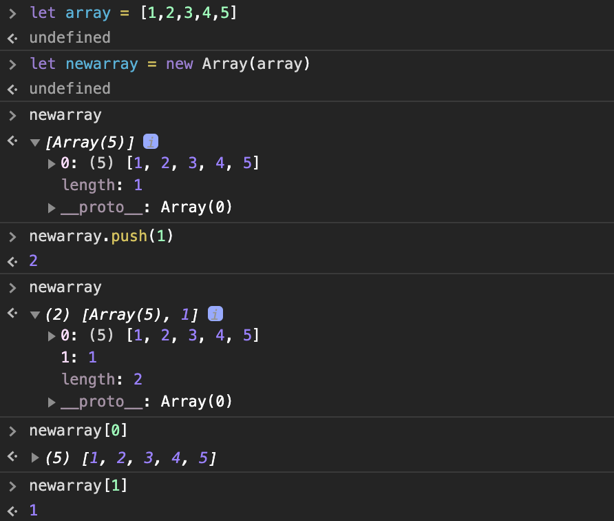 배열의 경우, 기존의 배열을 새로운 배열에 집어넣어 하나의 인덱스값으로 사용할 수 있다.