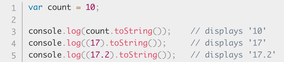 toString() 메서드는 특정한 Number 객체를 나타내는 문자열을 반환합니다.