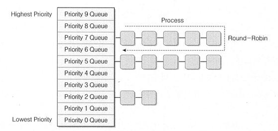 예를 들어, 다음과 같은 우선순위를 가진 프로세스들이 있다면