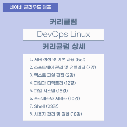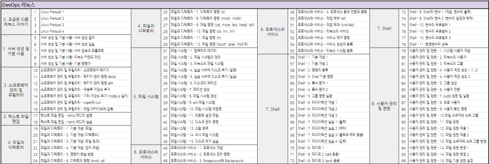 리눅스 서버 생성부터 사용자 관리 및 권한까지 크게 8개의 단원으로 구성되었습니다.