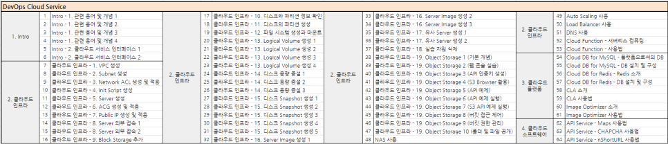 현재까지는 클라우드 서비스 과정을 포함해 총 다섯 가지 커리큘럼이 있습니다.