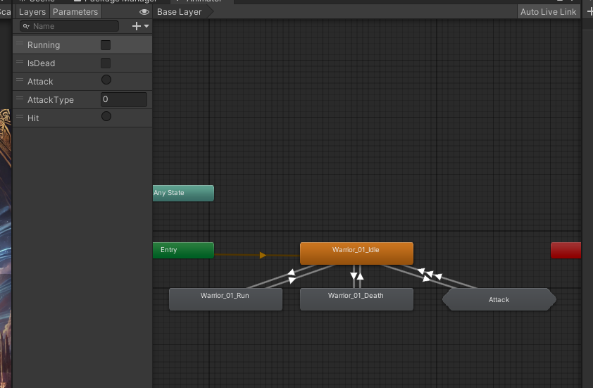 캐릭터들에 대해 공통적인 적용이 될 것이라 다음과 같이 애니메이션 컨트롤러를 구성했다.