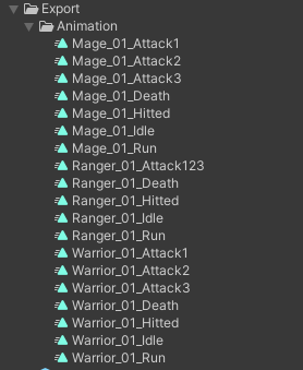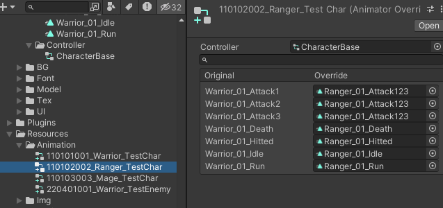 그리고 AnimatorOverrideController를 캐릭터 규격에 맞게 작성해서 리소스 폴더에 넣어둔다.