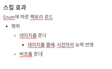 처음에는 스킬의 데이터 모델과 실제 행동을 분리하는 구조를 생각했다.