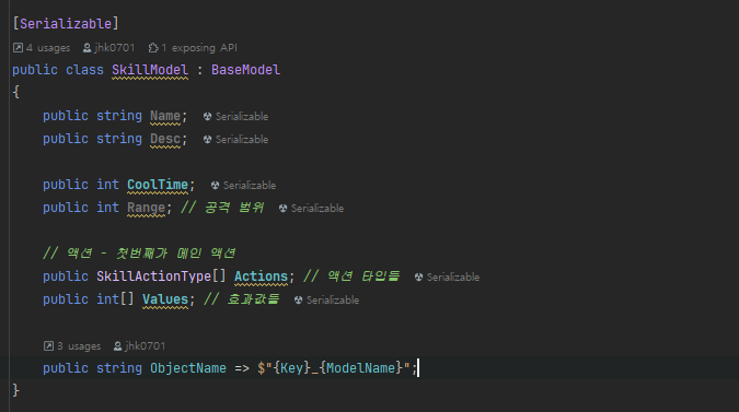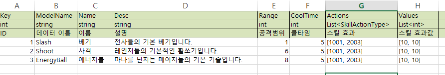 스킬 데이터 모델은 엑셀로 데이터를 받을 수 있게 만들려했다.
