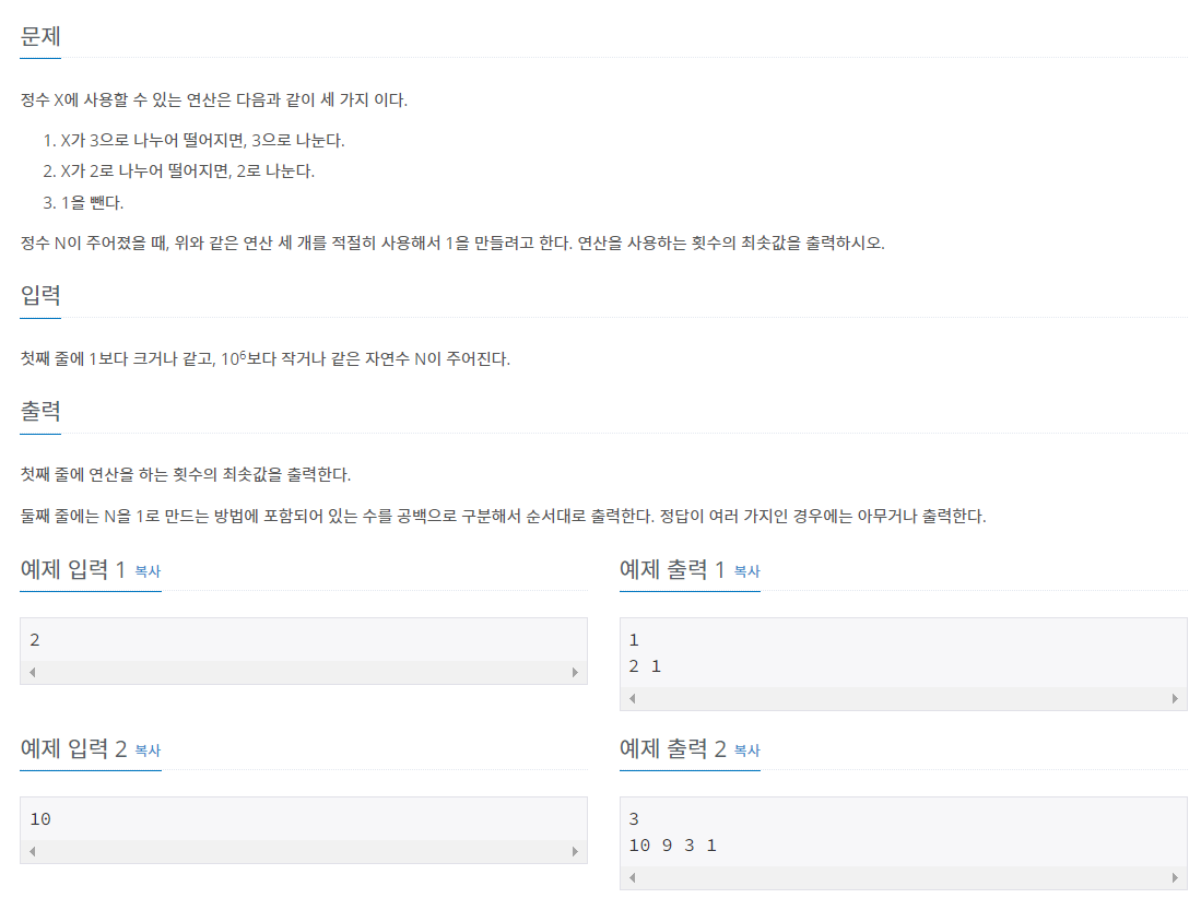 int num = dp[N]; // 총 (최소)연산 횟수