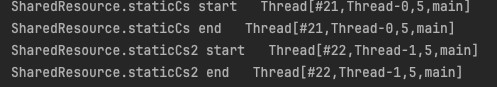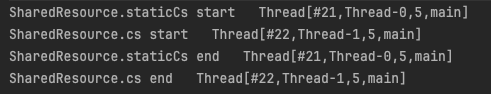 System.out.println("SharedResource.staticCs start " + Thread.currentThread());