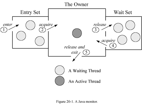 In the Java virtual machine, every object and class is logically associated with a monitor. For objects, the associated monitor protects the object's instance variables. For classes, the monitor protects the class's class variables.