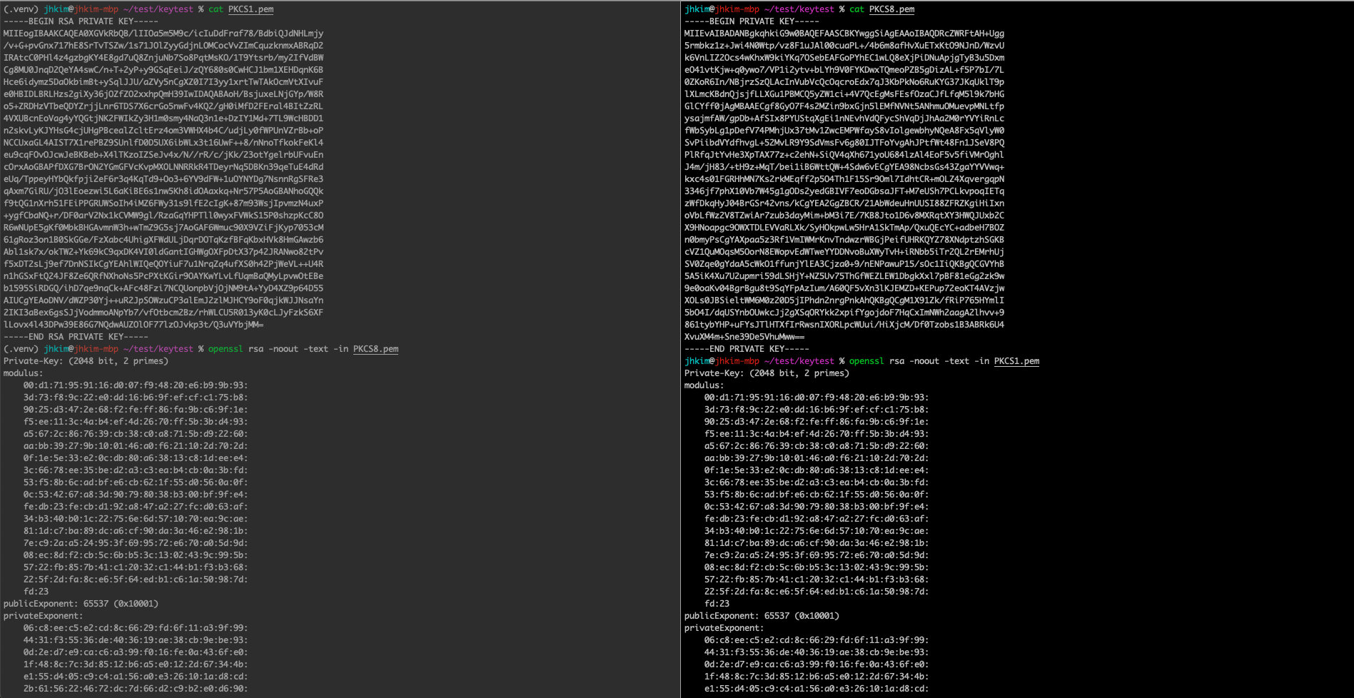 두 키를 비교해보면 키 자체는 다르지만, 실제 저장된 RSA 요소는 동일하다.