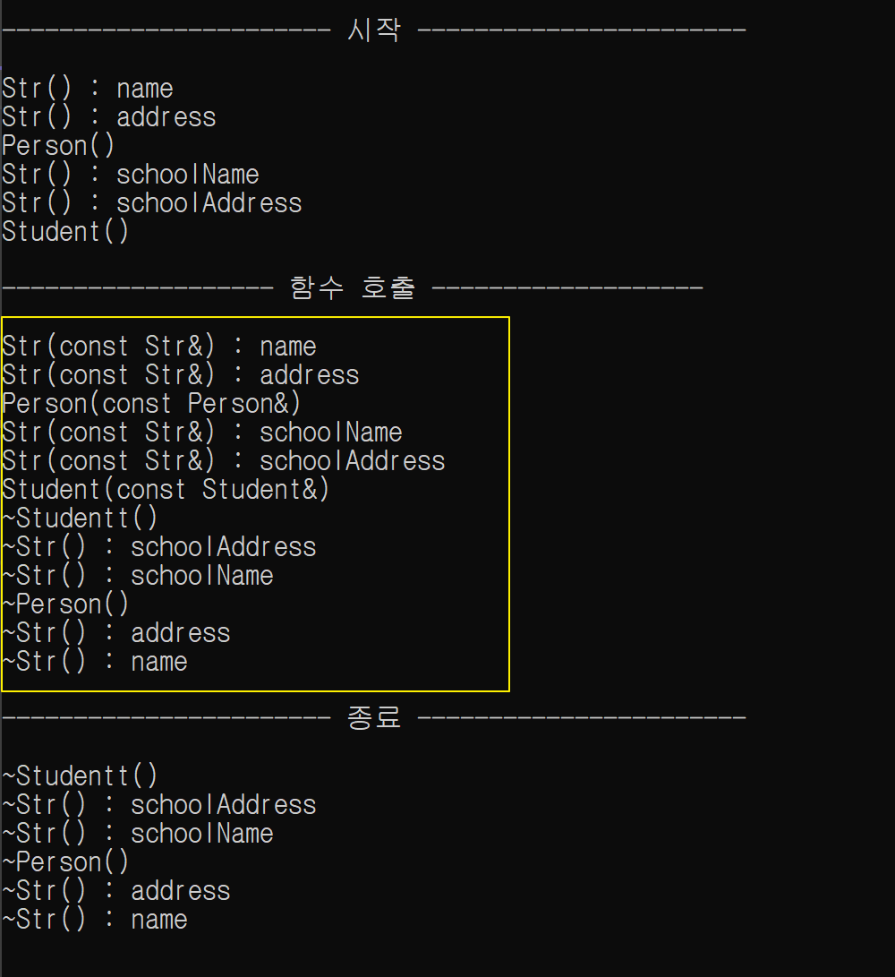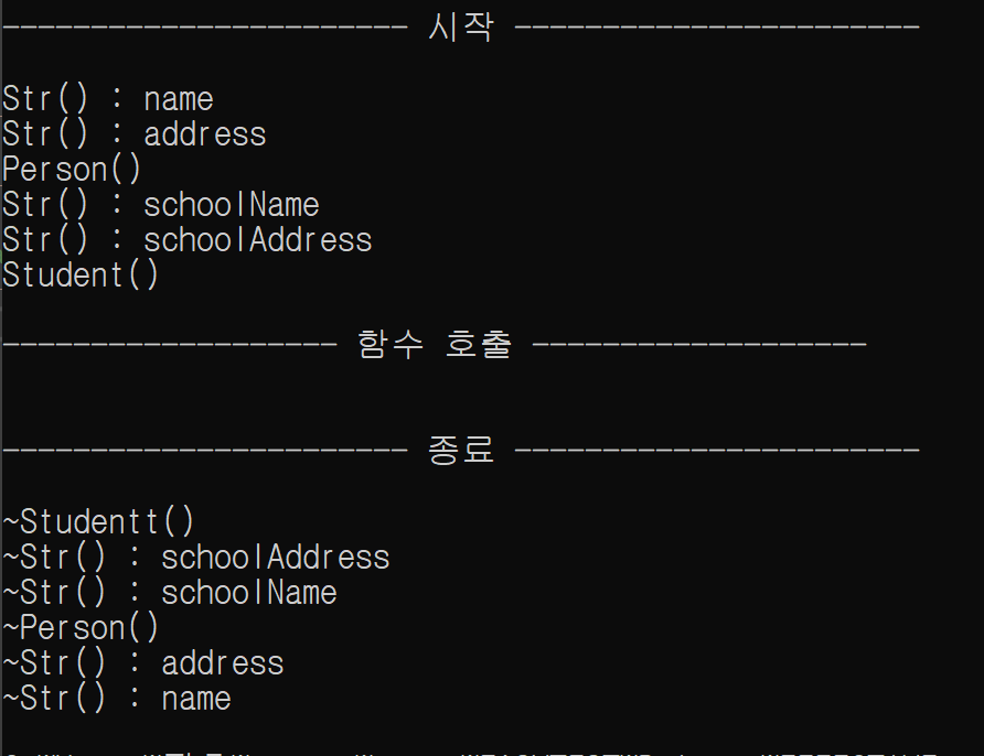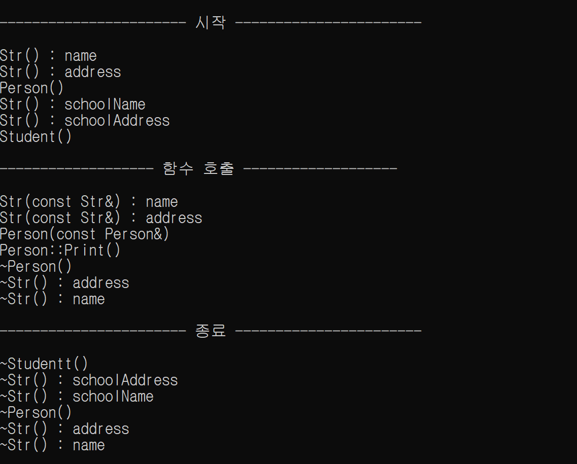 // 생성자 , 소멸자에선 멤버에 대해 자동으로 생성 / 소멸되도록 코드가 만들어진다.