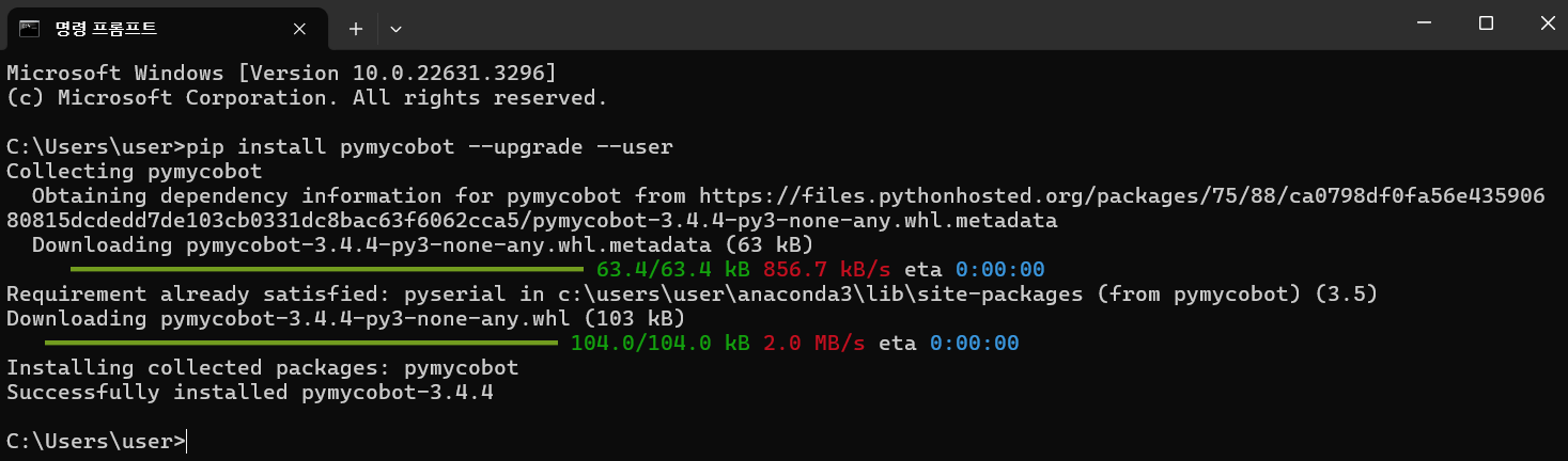 -elephant社 의 파이썬 api인 pymycobot을 다운 받기 (mycobot, myagv패키지 첨부)