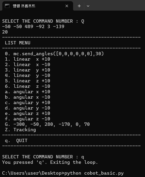 "카이로스과정 - cobot" 검색 -> cobot_basic.py 코드 다운