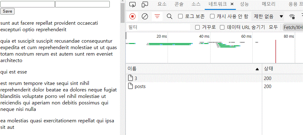 post 요청을 하고 나서 바로 get 요청을 하는 모습을 볼수 있다.
