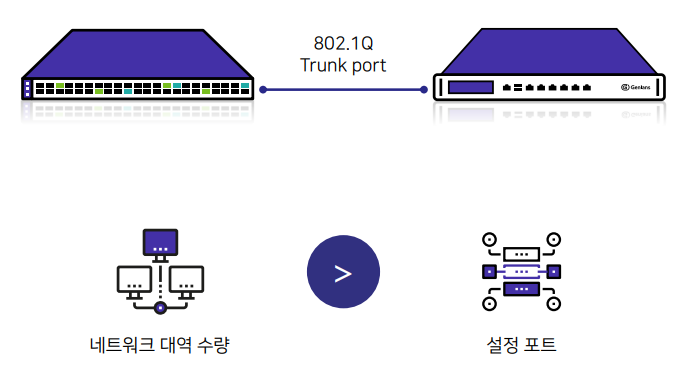 - Vlan으로 구성된 네트워크에 Trunk 인터페이스를 설정하여 논리적인 네트워크를 센서를 구성하는 방법