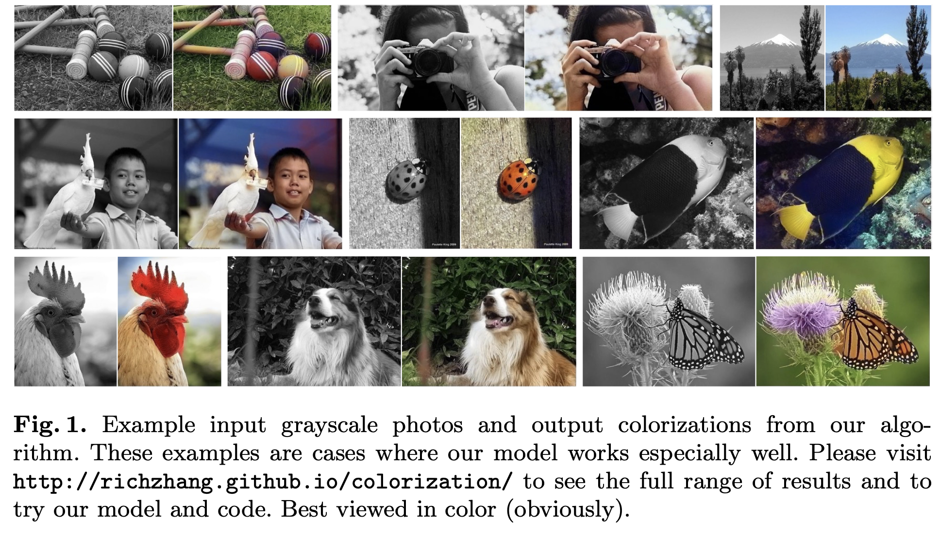 - A grayscale 사진을 입력으로 주었을 때, 그럴듯한 color 사진의 환각 생성하는 문제를 다룸.