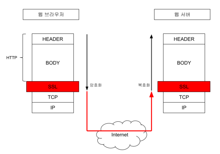- 클라이언트와 서버간의 통신에서 ssl이라는 계층이 추가됨