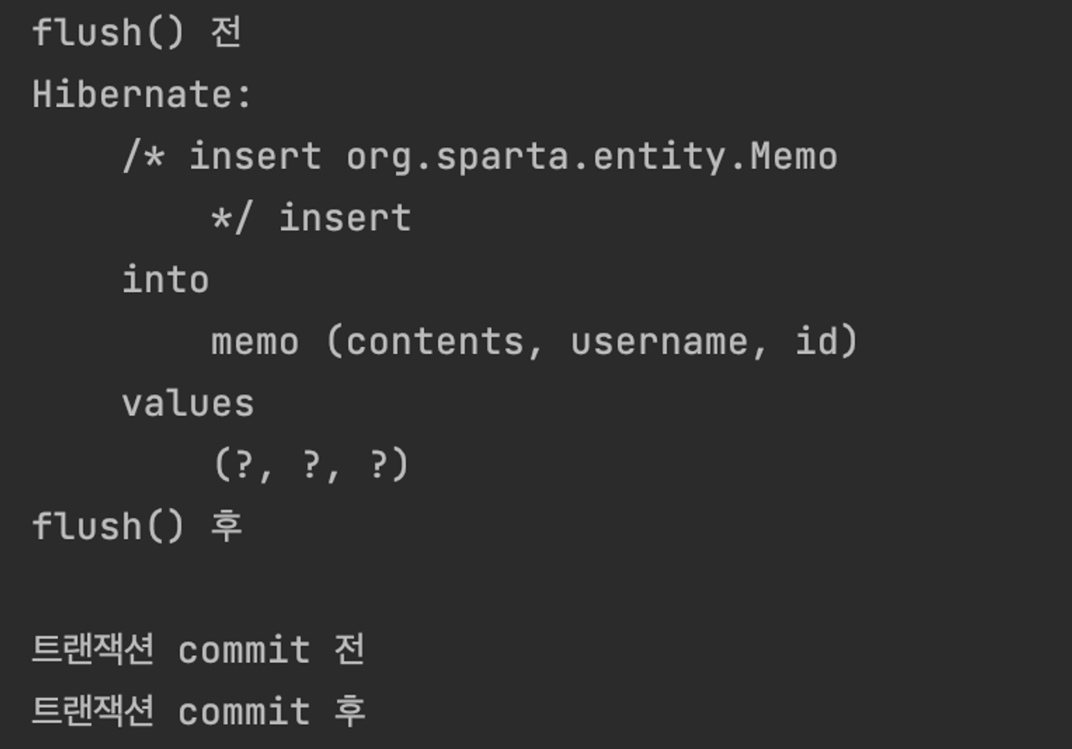 // commit 이 호출되면서 DB 에 수행한 DB 작업들이 반영됩니다.