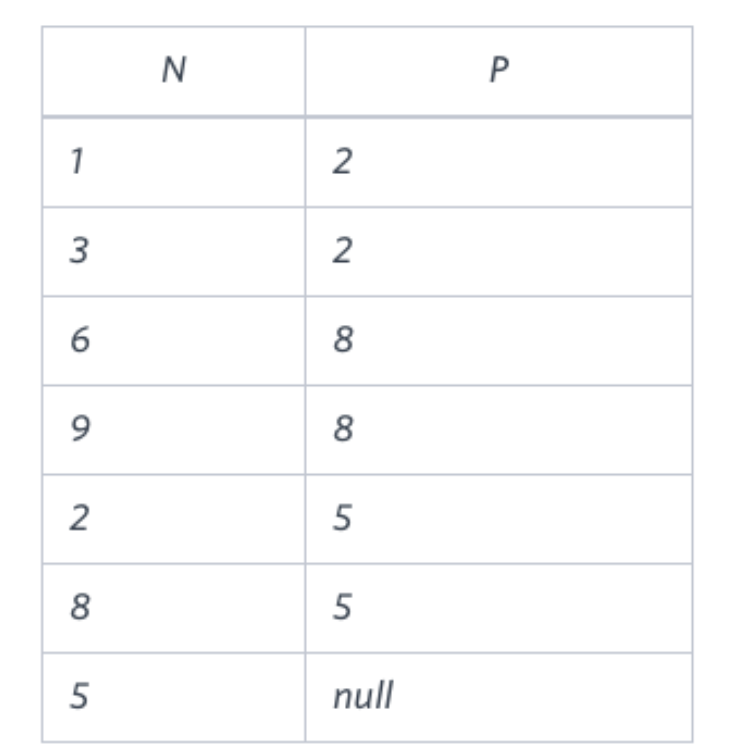 SELECT N, CASE WHEN P IS NULL THEN 'Root' WHEN N NOT IN (SELECT DISTINCT P FROM BST WHERE P IS NOT NULL) THEN 'Leaf' ELSE 'Inner' END FROM BST ORDER BY N;