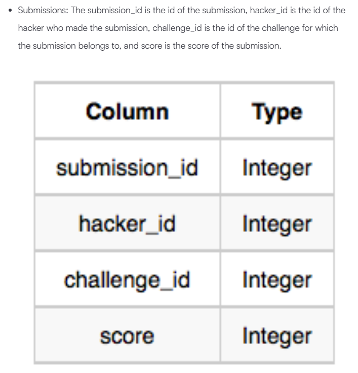 GROUP BY hacker_id, challenge_id