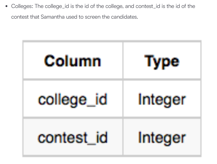 JOIN colleges ON contests.contest_id = colleges.contest_id