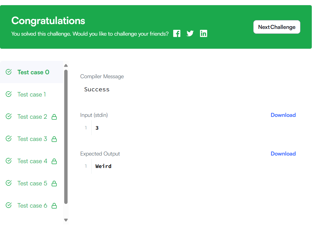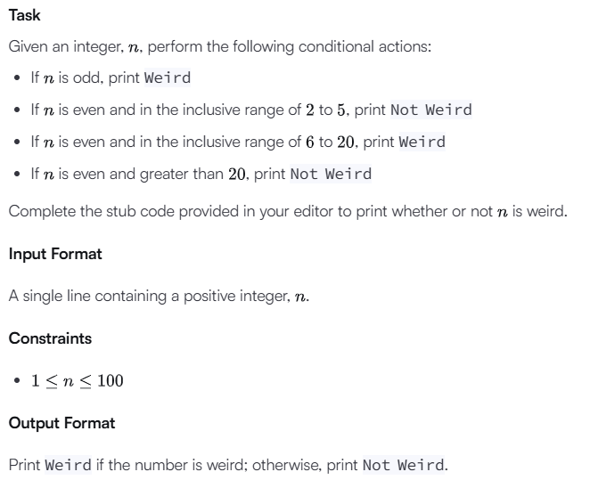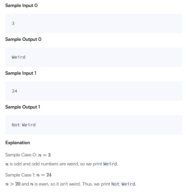 else if (N >=6 && N <=20) {System.out.println("Weird");}