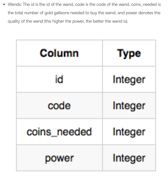 FROM Wands W JOIN Wands_Property WP ON W.code = WP.code