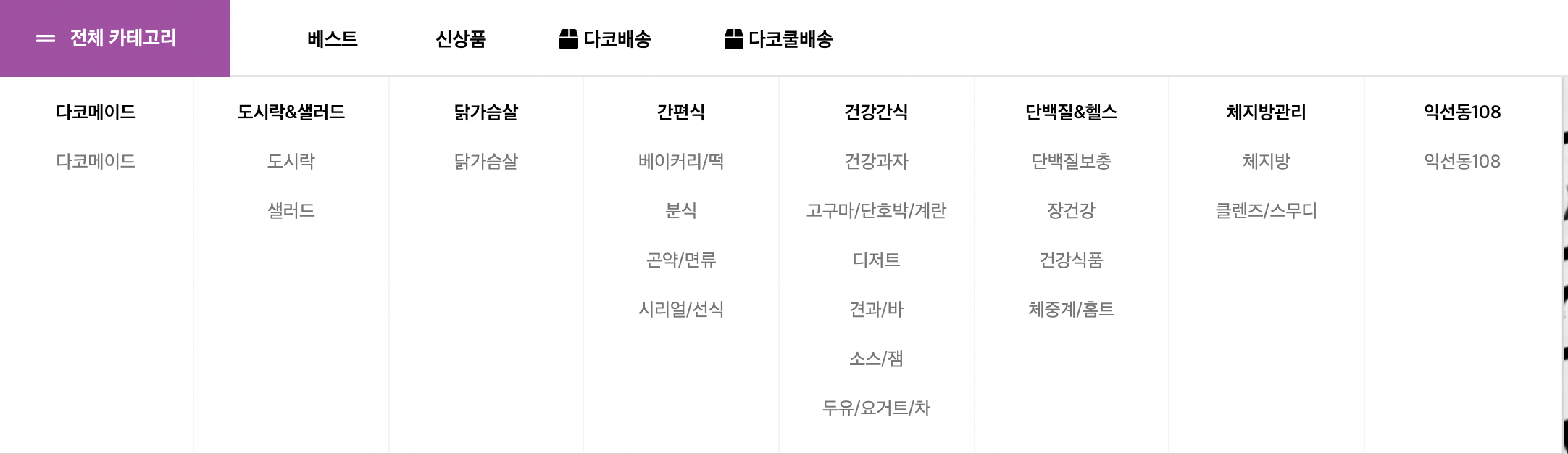 다신샵은 메인페이지, 카테고리(메인-서브), 베스트나 신상품같은 리스트 페이지에서 각각 다른 상품 데이터를 리스트로 불러오고 있었다. 특히 카테고리도 메인, 서브 카테고리로 세분화되었고 각 카테고리를 클릭했을 때 불러오는 리스트가 달랐다.
