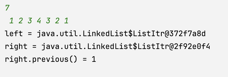ListIterator<Integer> right = list.listIterator(list.size());