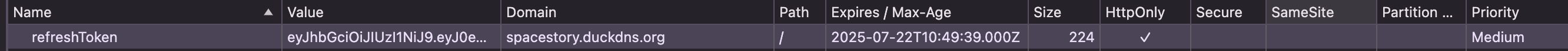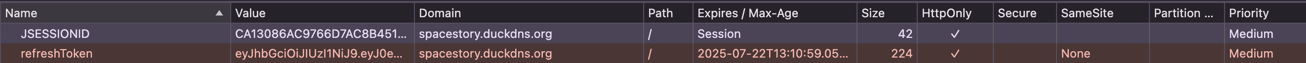 - 서버 도메인에서 발급한 쿠키를 확인하니, SameSite가 비어있었다. 처음에는 대수롭지 않게 생각하다가 이렇게 비어있는 경우 해당 설정이 None이 아닐 수도 있겠다는 의심이 들었다. (Nginx로 앞단에서 배포한다고 해도 개발 단계에선 교차 출처 허용을 해주어야 한다. SameSite 옵션이 활성화되어 있으면 쿠키가 보이지 않는다)