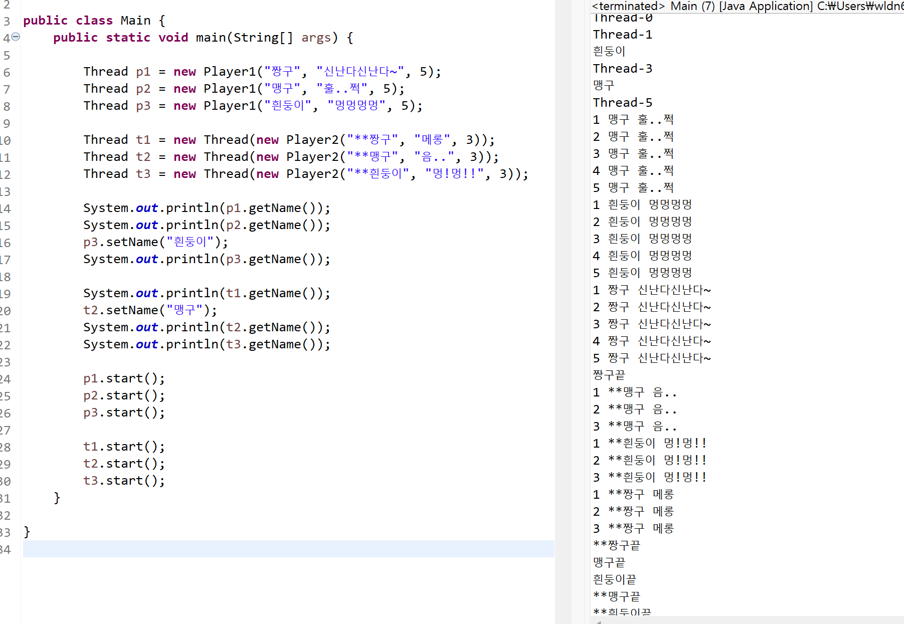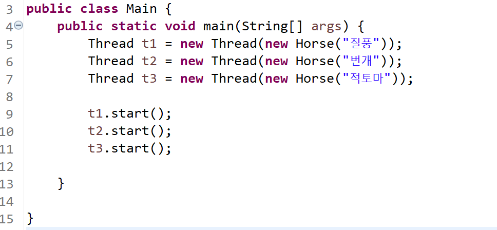 => 출력할 때마다 순서 달라짐!! start( )가 호출된 순서대로 출력되지 않음