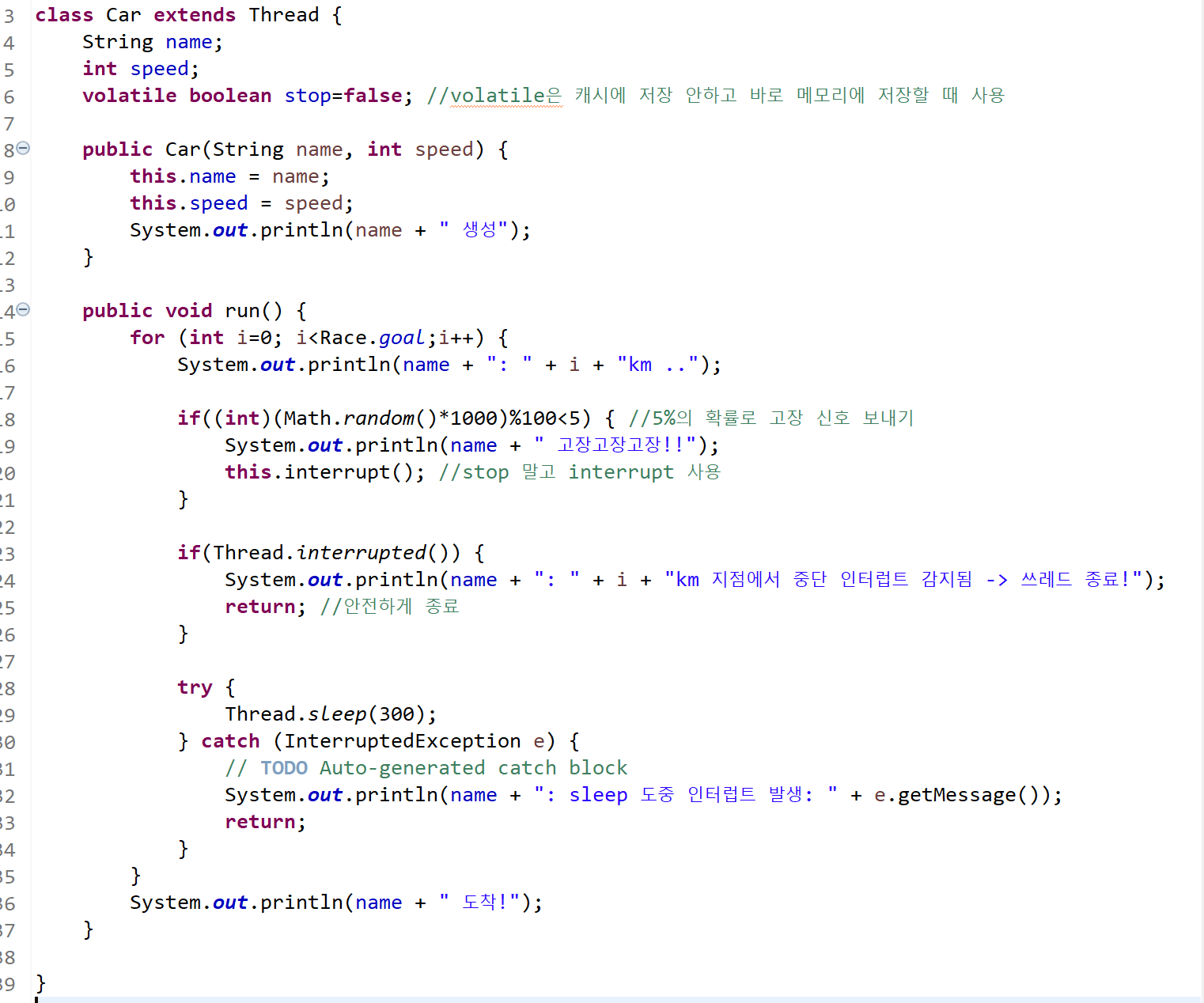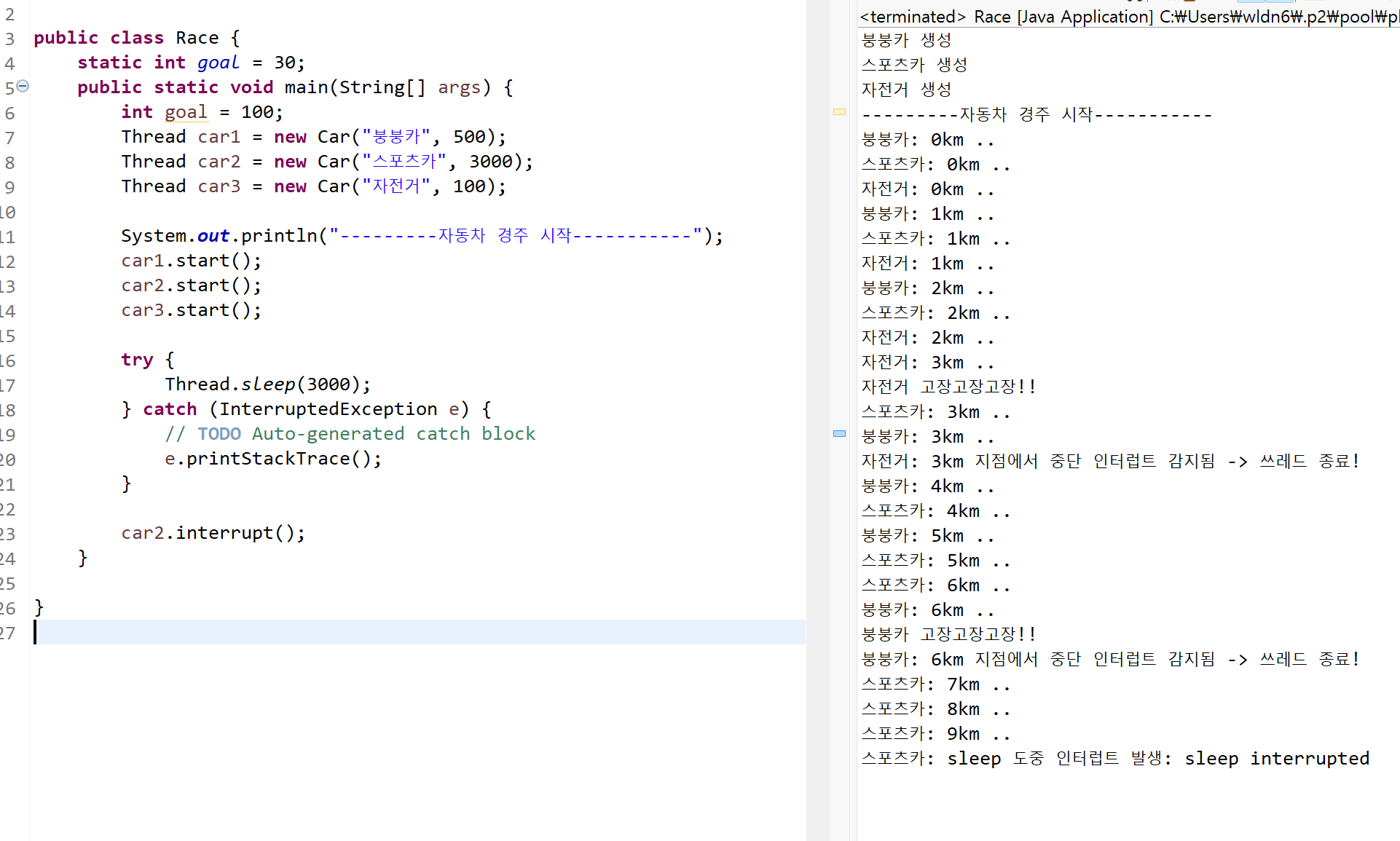 main에서 car2에 interrupt 신호 보냄 -> 스포츠카: interrupt 발생