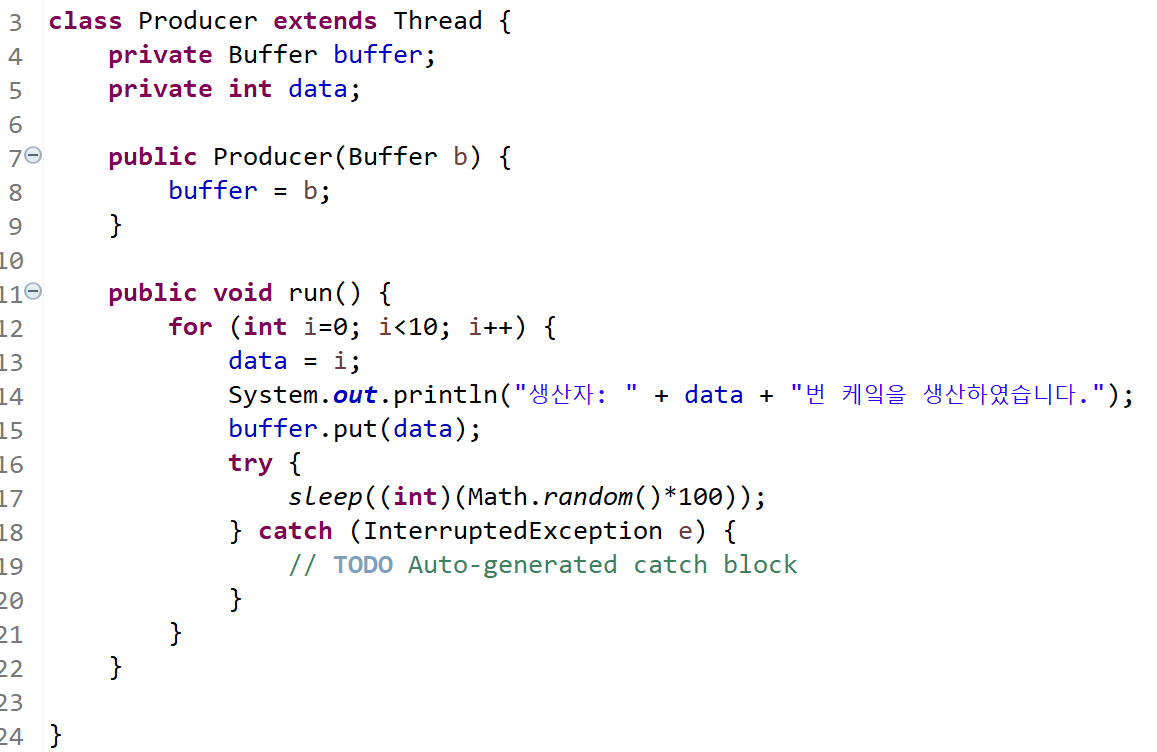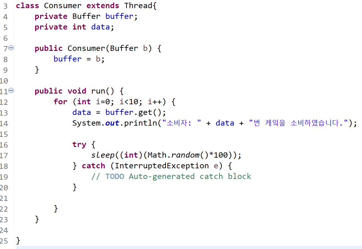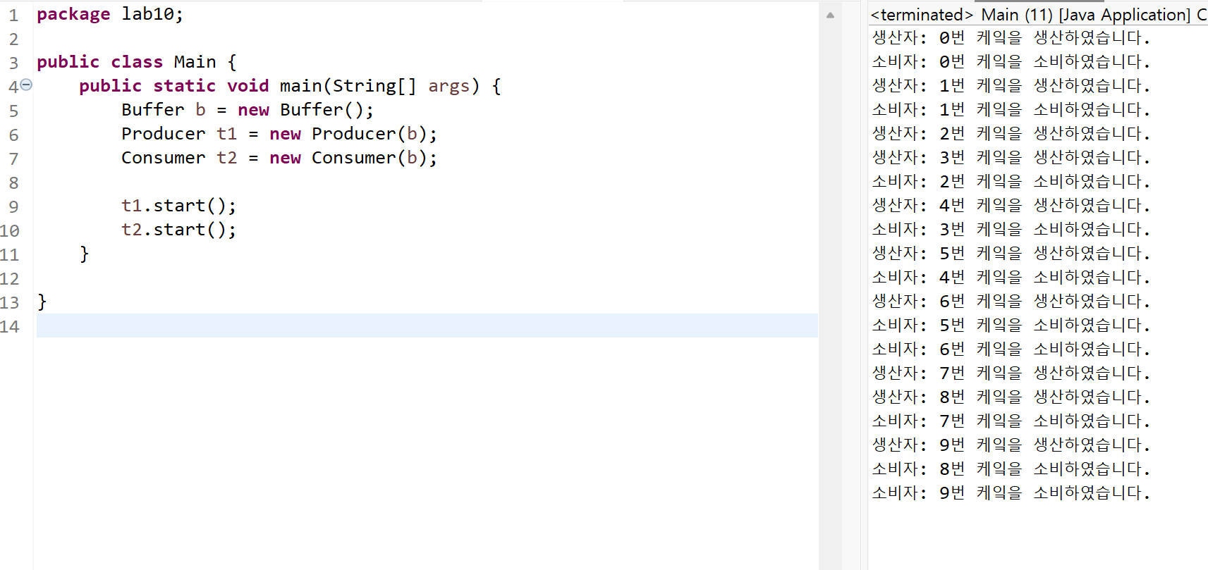 notifyAll( ) -> 모든 생산자와 소비자를 깨우며 조건을 다시 확인하고, 프로그램이 계속 실행되도록 함