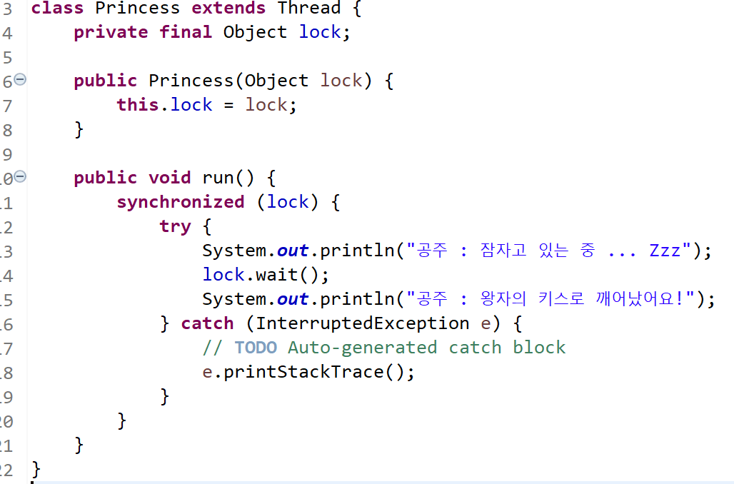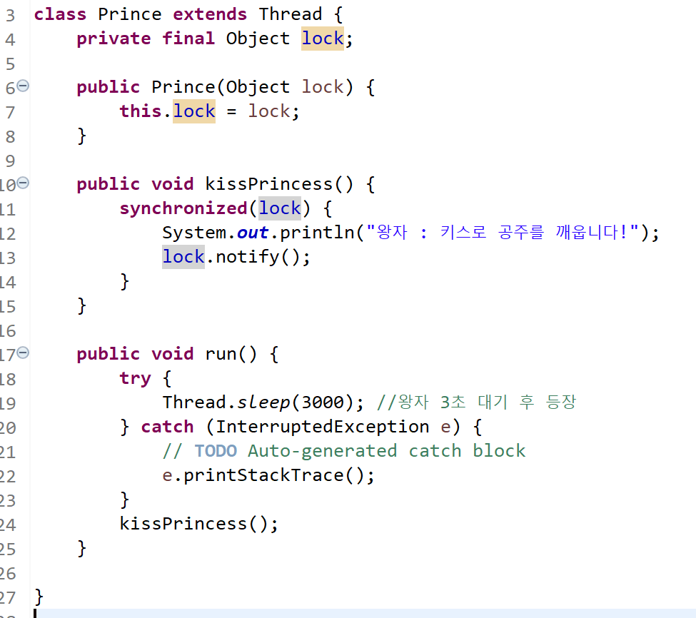 1. synchronized(lock) : princess가 놓은 열쇠 잡음