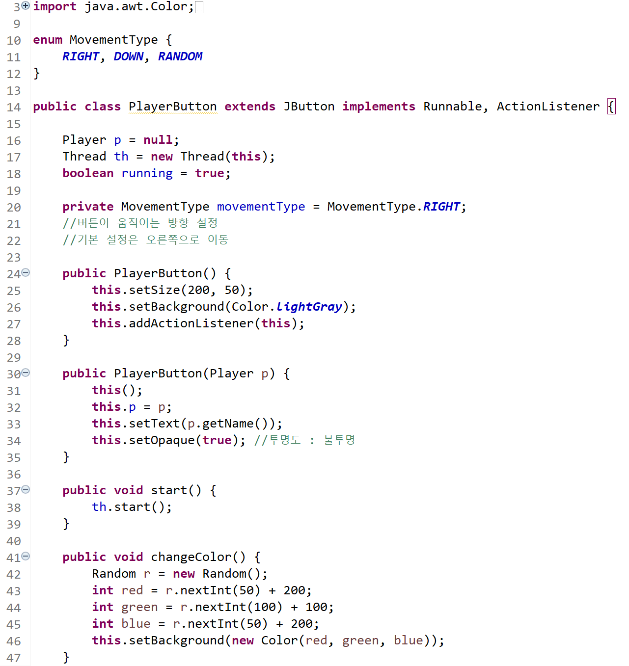PlayerButton - 버튼의 공통적 특성 정의 (색상, 크기, 쓰레드 동작 등)