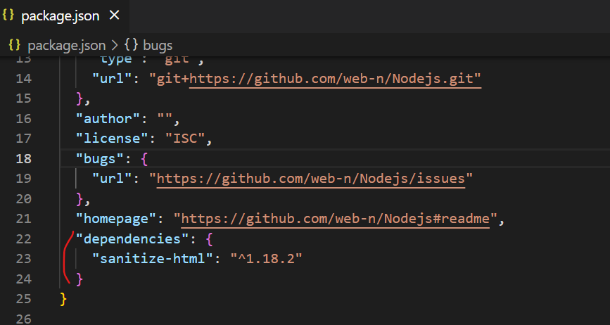package.json에 보면 dependencies에 sanitize-html을 적어놓음