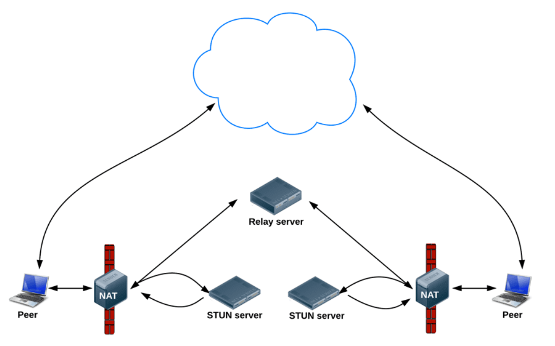 - 클라이언트는 STUN 서버한테 자신의 public address와 라우터의 NAT 뒤에 있는 다른 클라이언트에 접근 가능한지 여부를 물어봄